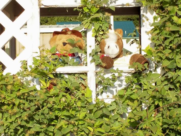 Cody and I found this pretty trellis window to look through. I like the way the vines are growing up it.