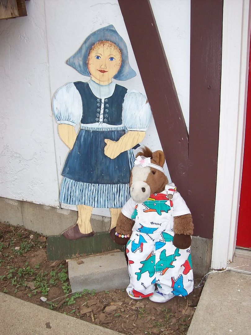 While at Elk Horn I saw this danish girl foot scraper. See her little wooden shoes and her bonnet. She is just a little taller than me.